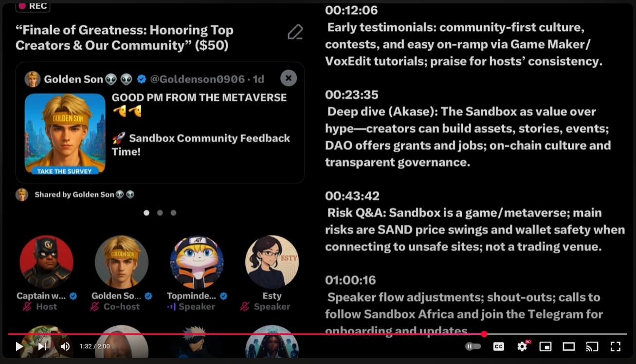 We hosted a final mega Twitter/X Space featuring top creators, key community members, and highlights from our campaign journey. The session included open community shoutouts and creator reflections.