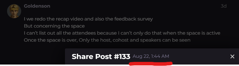 - I didn’t list out the attendees during the space because am only submitting this as evidence in my previous milestones