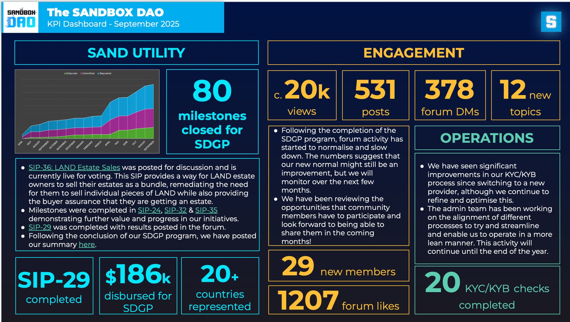 quick question: since the DAO has invested almost 3m $SAND, is there a way in future reports we could also show the benefits/value we’ve gained: players or developers in our ecosystem in particular ? … I’d love to get a better sense of what our overall measure of success looks like when it comes to spending on projects, initiatives, or events that were pitched to capture players or builders.
