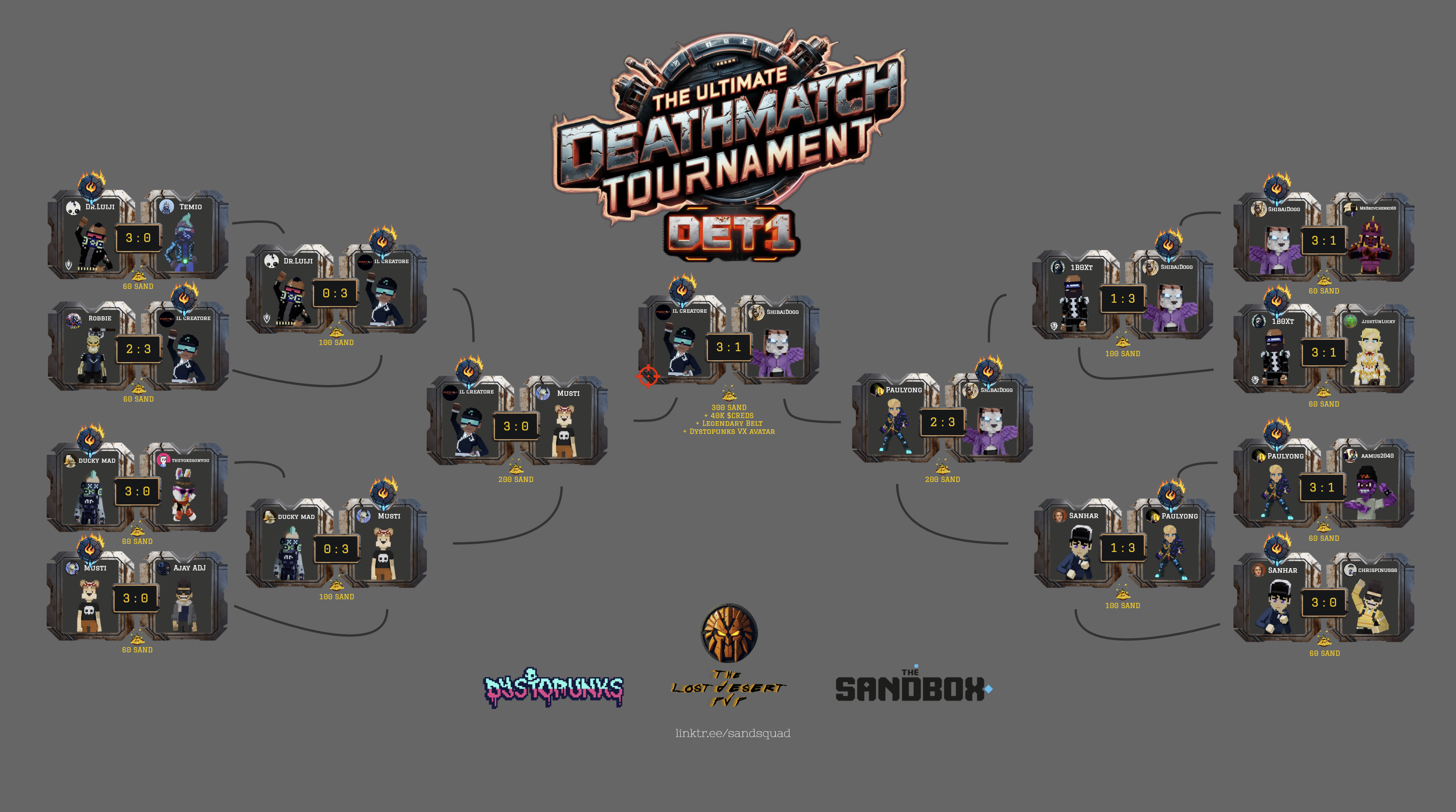 - winners 1/4 finals round 100 SAND each (400 SAND pool)
